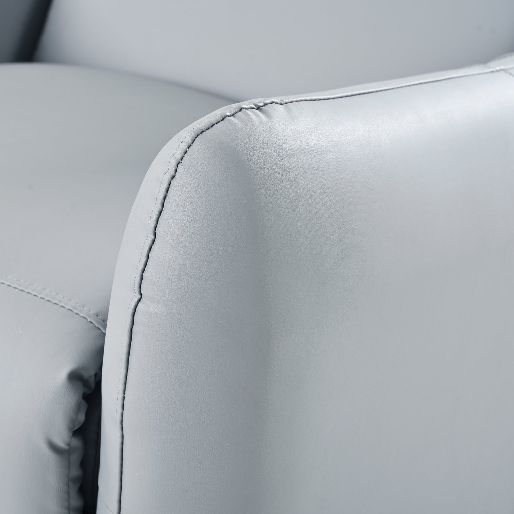 • Materials & Design: Solid wood frame with rubberwood base, upholstered in durable light gray PU leather; pillow-top arms and cushioned backrest for comfort.