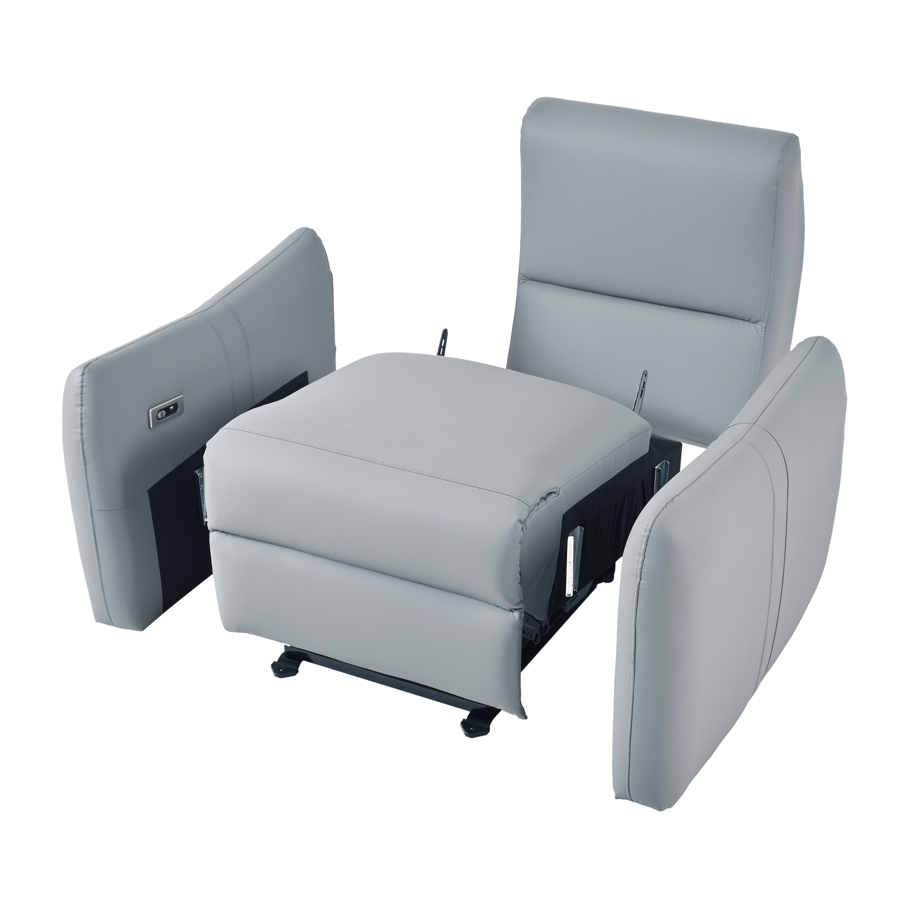 Discover our Electric Pedicure Chair Sofa, designed for maximum comfort in small spaces. Upholstered in light gray PU leather, it features motorized recline up to 160°, an extendable footrest, and a space-saving wall-hugger design that works just 0.4" from the wall. Built-in USB and Type-C ports keep devices powered, while pillow-top armrests, a cushioned backrest, and medium-soft padding provide ergonomic support. With a weight capacity of 330 lbs, it’s a durable choice for apartments, bedrooms, RVs, and professional use.
