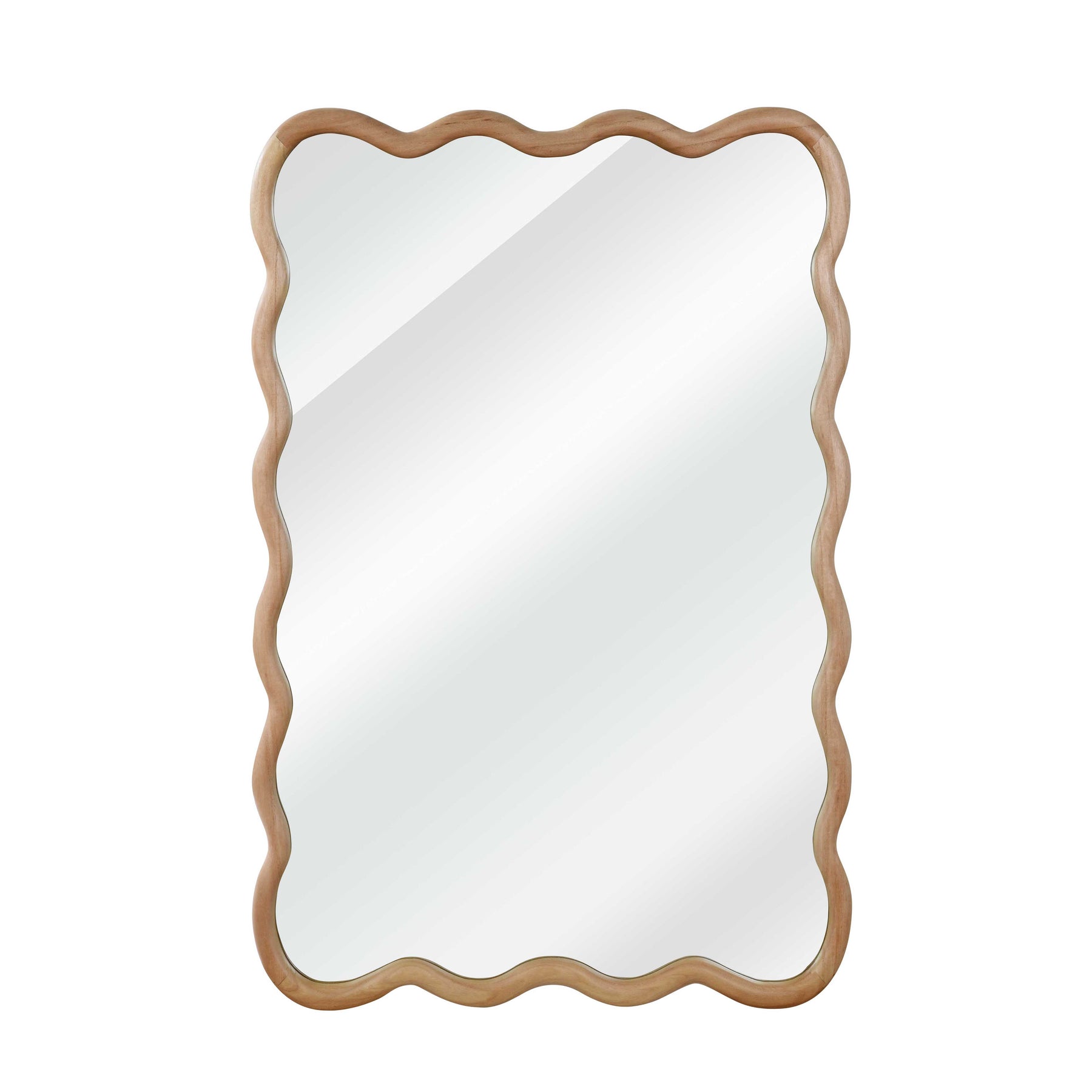 Bring softness and character to your space with this 24" x 36" wavy wall mirror. Designed with a natural wood frame and an organic curved silhouette, it works as both a functional mirror and a decorative accent for bathrooms, entryways, bedrooms, and living spaces.