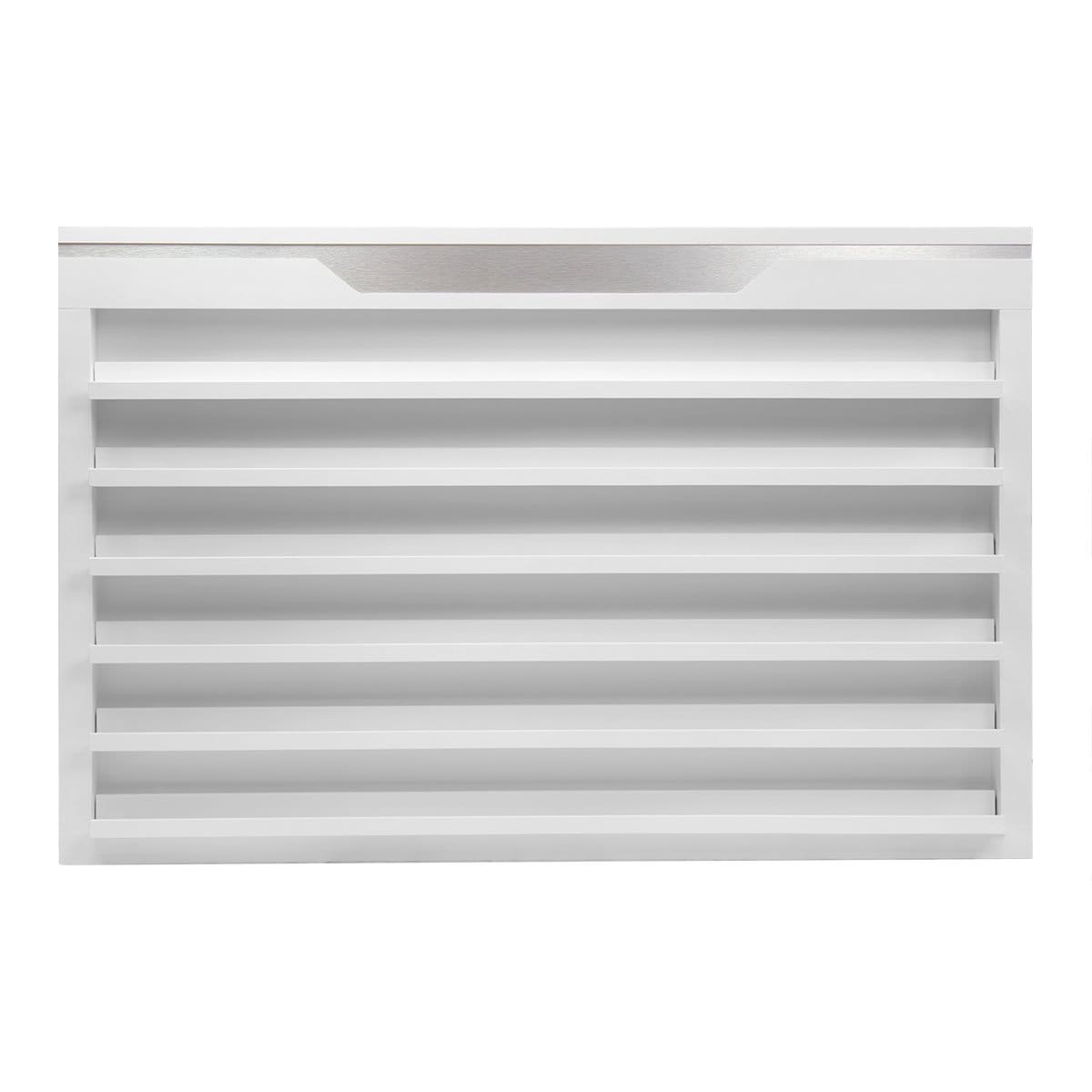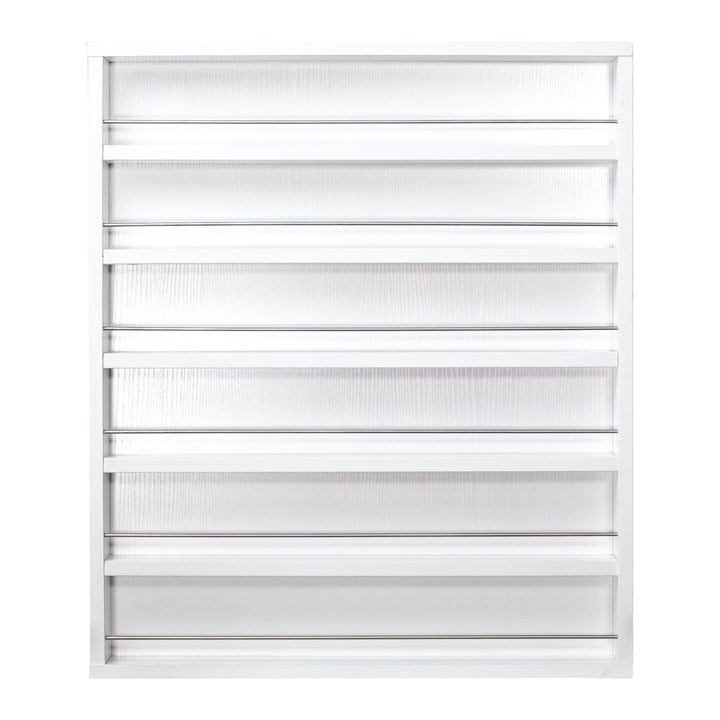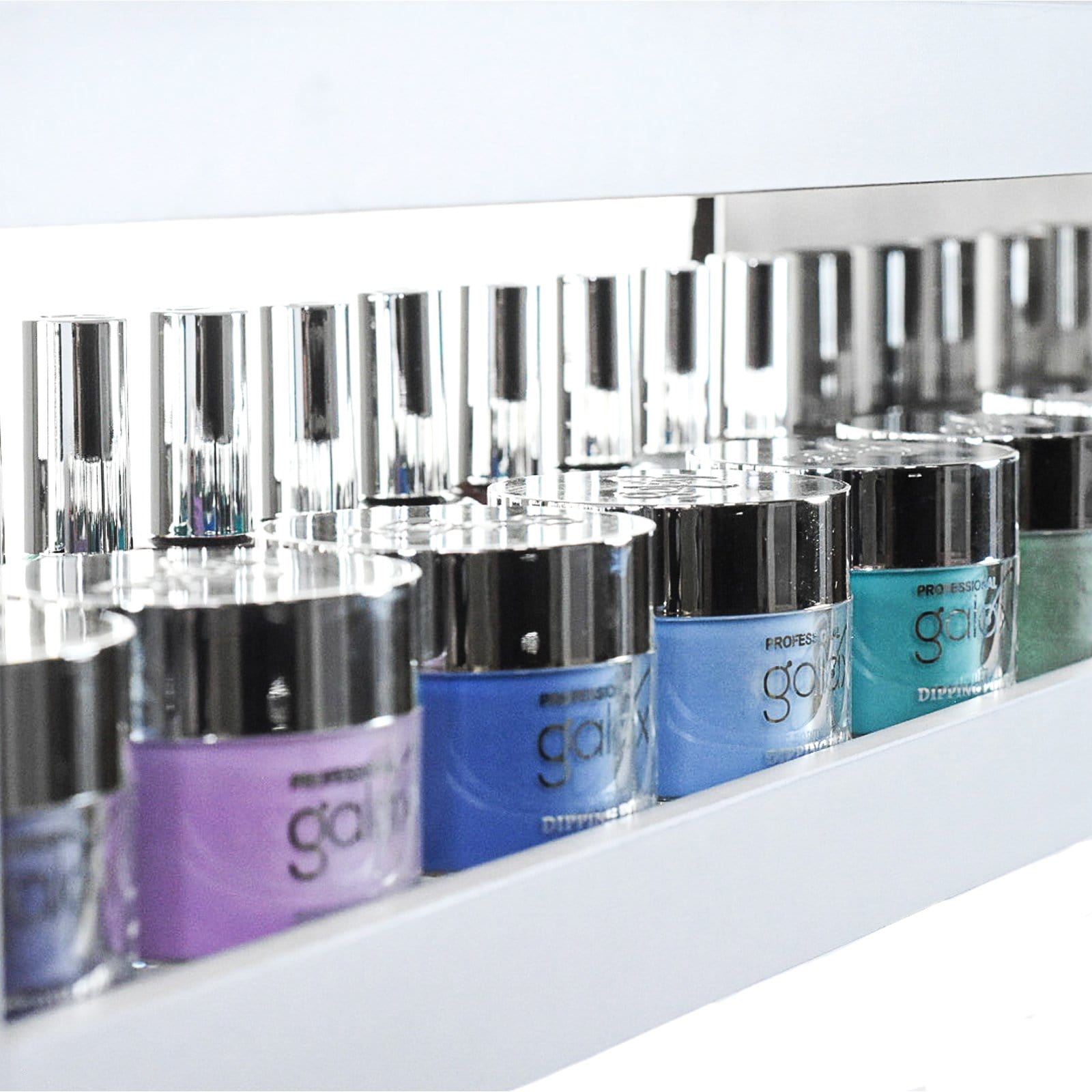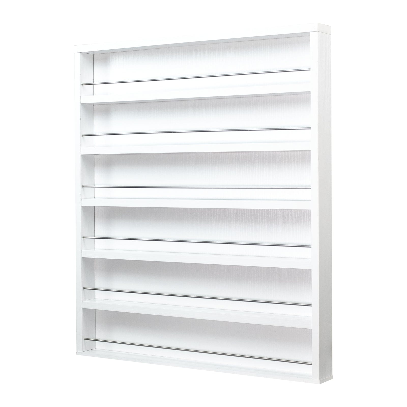 The Sonora Powder Rack features six tiered shelves, holding up to 240 powder bottles. Its sleek design with white and silver accents complements any salon decor, providing easy access and organization. It’s designed for easy wall mounting, making it a practical solution for efficient storage