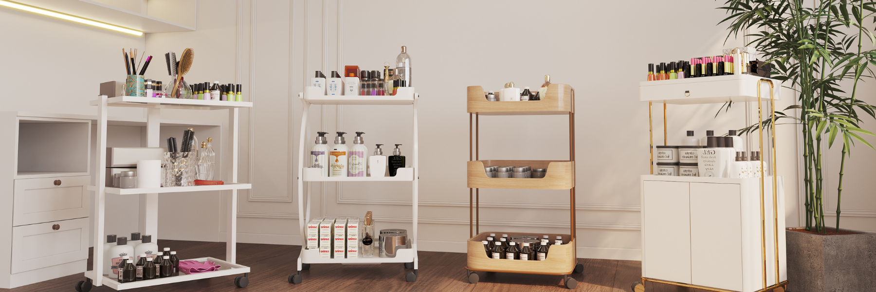 Los carritos de belleza de Beauty-Ace están diseñados para ayudarle con esa inquietud. Construidos con estructura de metal completo y estantes de vidrio templado junto con ruedas giratorias, los carritos de salón se utilizan en consultorios médicos, spas y salones de belleza, consultorios de tatuajes y clínicas dentales.