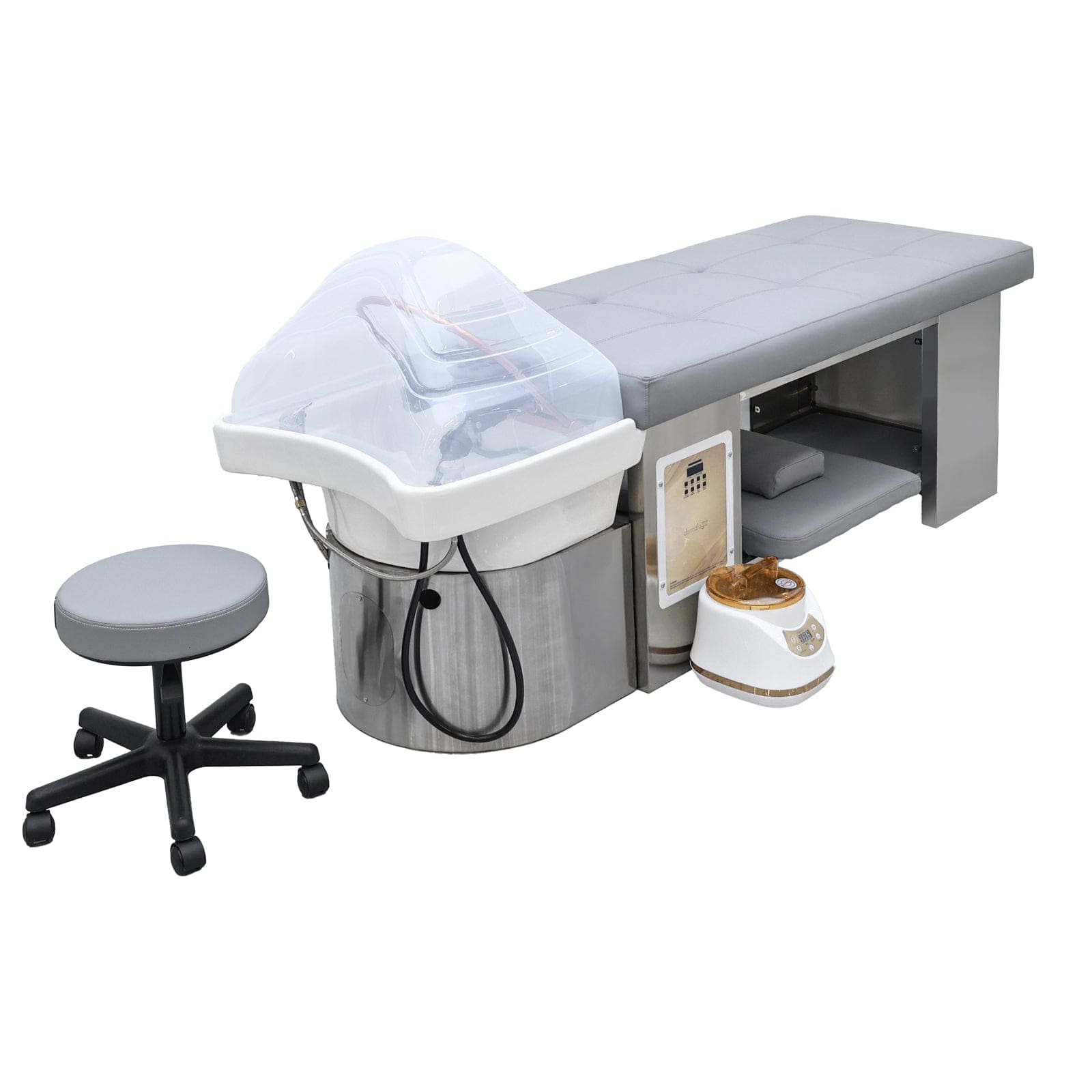 The BA SALON FURNITURE Head Spa Bed Series is designed for professional head spa treatments in salons, spas, and wellness centers. These adjustable head spa beds feature reclining headrests for comfort during scalp massages, shampooing, and deep cleansing treatments. Crafted from durable, easy-to-clean materials, these comfortable head spa beds are built for long-term use in busy salon environments. Whether you're offering scalp care treatments or luxury head spa experiences, these beds help create a relaxing and professional atmosphere for your clients.